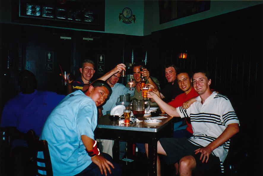 Een dag voor het einde van mijn stage was het tijd voor een klein afscheidsfeestje in de pub; proost!!!