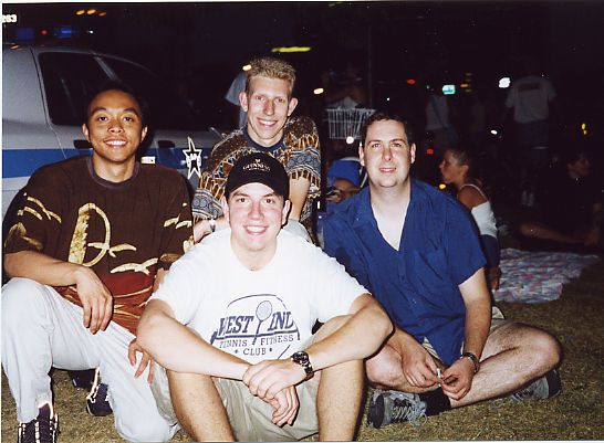 Met deze groep uit het I-house was ik 3 juli (!) op pad naar de 4th of july vuurwerkshow v.l.n.r.: Arthur, Gavin, Moi en Jason (Quest succeeded ;-)