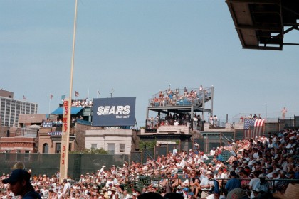Wrigley Field ligt middenin een woonwijk, dus op het dak rondom het stadion zijn allemaal tribunes te zien; dit is vrij uniek vertelde Aneesh me!