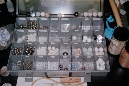 Deze ballenverzameling heb ik tot mijn beschikking in mijn lab om experimenten te doen!