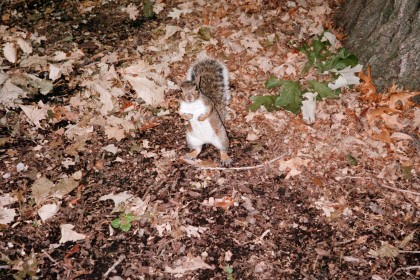 Eekhoorntjes vind je hier overal voor je voeten of anders wel bij een boom of zelfs in prullenbakken!!! Deze was wel heel nieuwsgierig naar zijn Hollandse vriendjes.