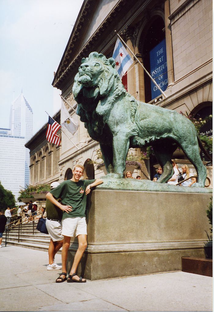 De beroemde leeuwen voor het Art Institute of Chicago moesten natuurlijk op de foto
