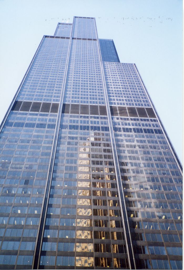 Vlak voor het betreden van de Sears Tower bewonderden we nog eens de enorme hoogte (442m)