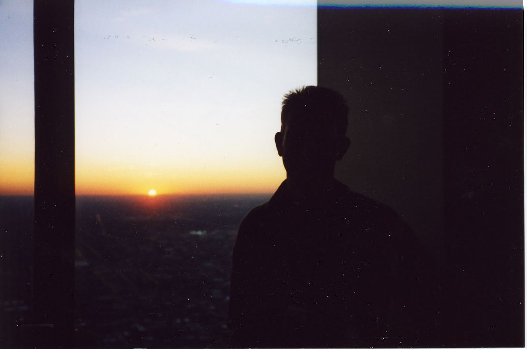 Mijn silhouet is hier te zien met de zonsondergang nog een keer vanaf grote hoogte!
